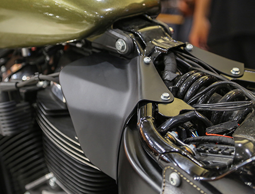 ヒートガード(M8ソフテイル ‘18〜‘24)黒ゲル / ¥18,000 (税抜き)カーボン / ¥28,000 (税抜き)