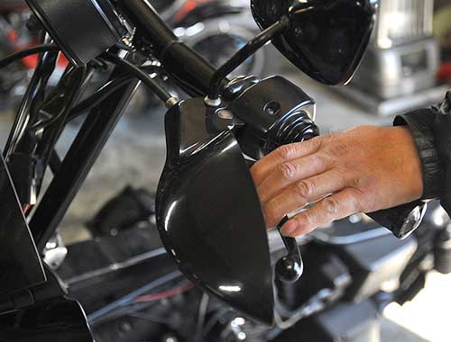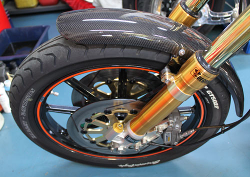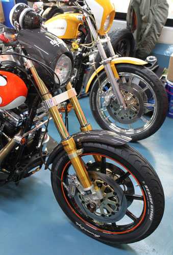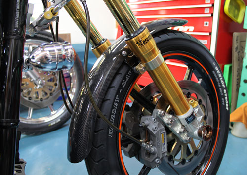 XR1200&V-rodプレーンフロントフェンダー 黒ゲル仕上 (FRP製) / ¥14,000 (税抜き) ウェットカーボン製 / ¥24,000 (税抜き)