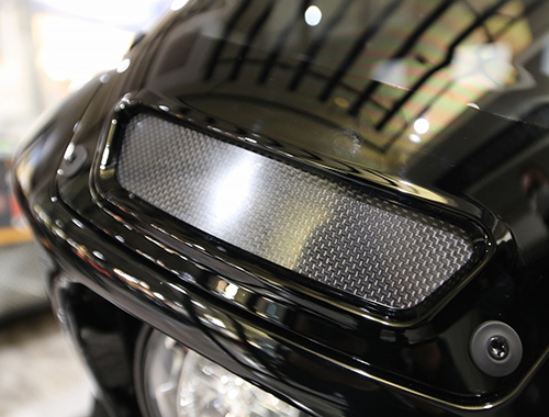 ファントムゲートプロデュースフロントフェンダー カーボンMIX (SHOWモデル) / ¥38,000 (税抜き) 黒ゲル仕上 (網付) / ¥20,000 (税抜き) 黒ゲル仕上 (網無) / ¥16,000 (税抜き)